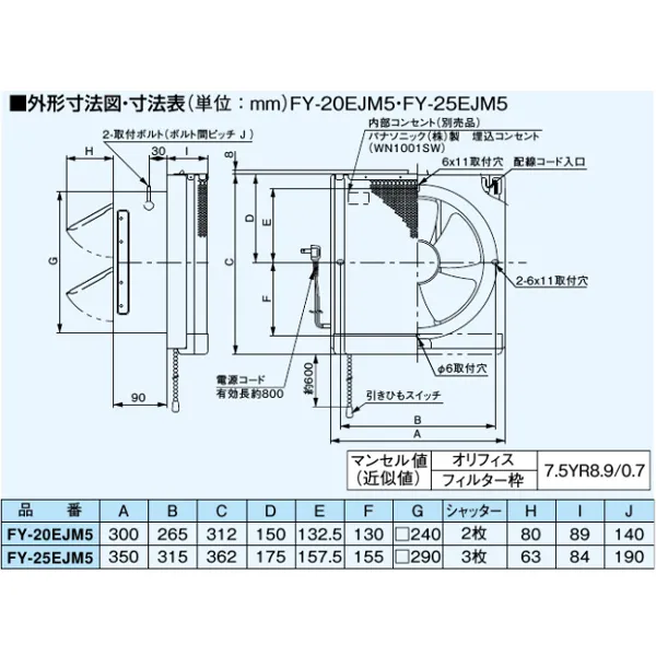 ●スイッチは引きひも式又は壁埋込スイッチによる遠隔操作も可能