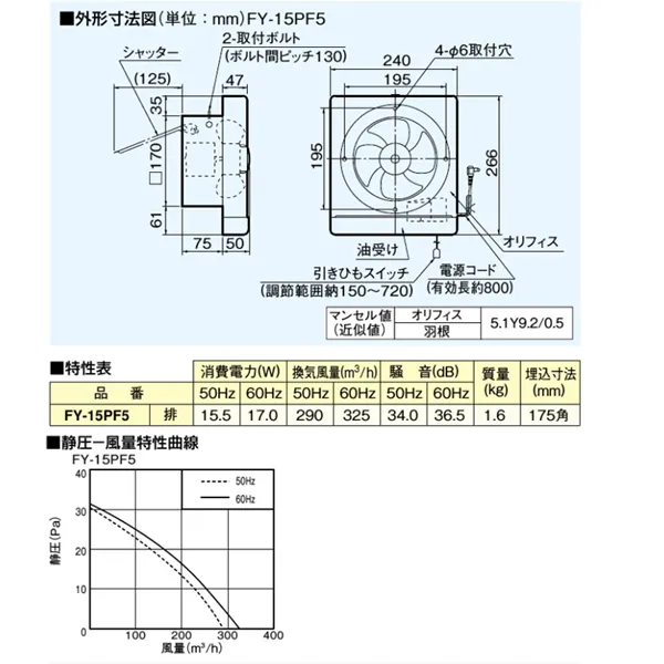 175mm角の取付け穴に設置できるコンパクトタイプ。