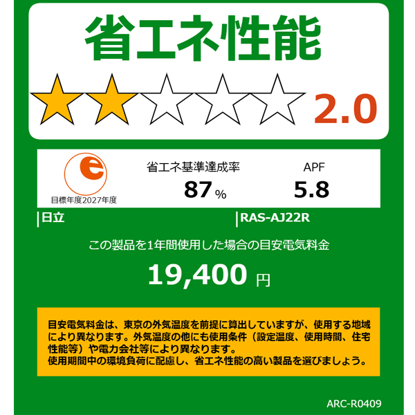 日立 白くまくん おもに6畳用 RAS-AJ22R(W) 2024年モデル