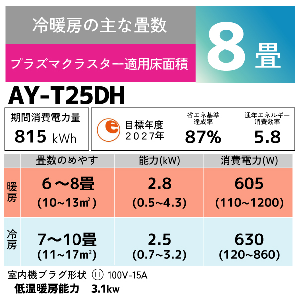 シャープ エアコン おもに8畳用 AY-T25DH-W 2025年モデル