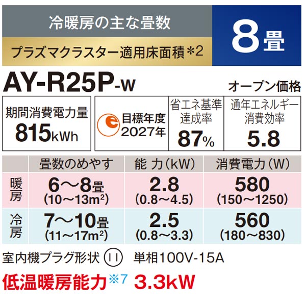 シャープ エアコン おもに8畳用 AY-R25P-W