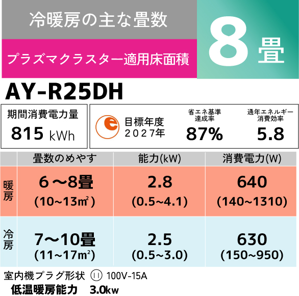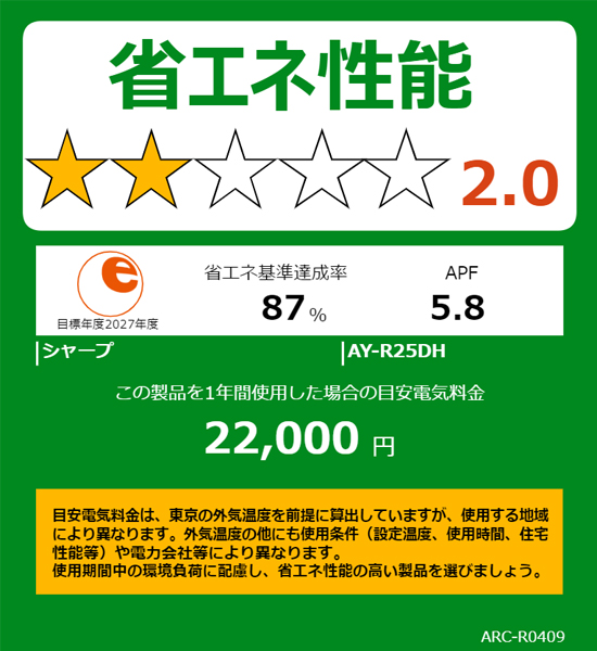 シャープ エアコン おもに8畳用 AY-R25DH-W