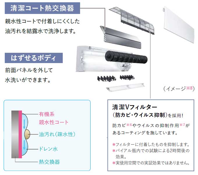 1.「結露水で洗浄」冷房運転で発生した結露水で汚れを外に洗い流す