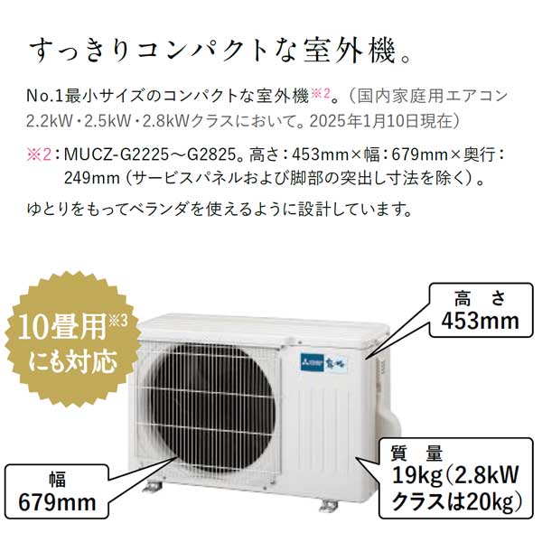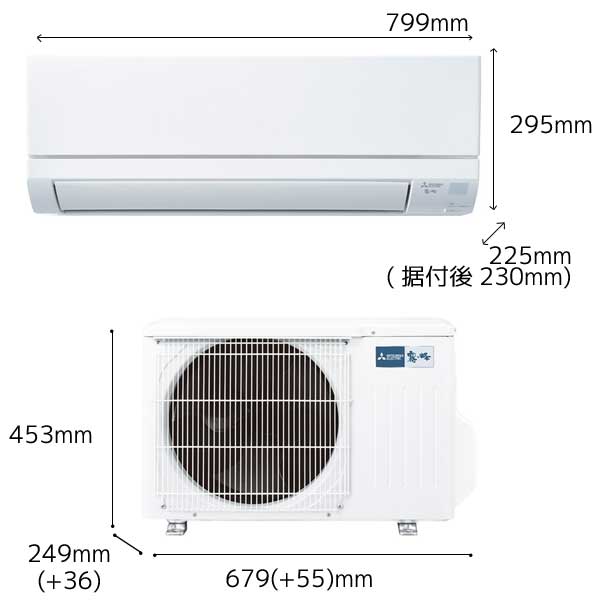 室内機品番 MSZ-GV2225-W-IN 室外機品番 MUCZ-G2225 室内機寸法・質量 H295×W799×D225(据付後230)mm・約8kg