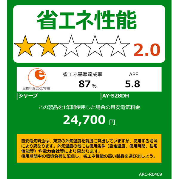 (JIS C 9612:2013)913kWh 省エネ基準達成率/通年エネルギー消費効率