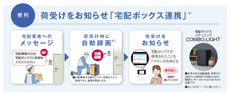 ■COMBO-LIGHT(宅配ボックス)との連携※で荷受けをお知らせ。