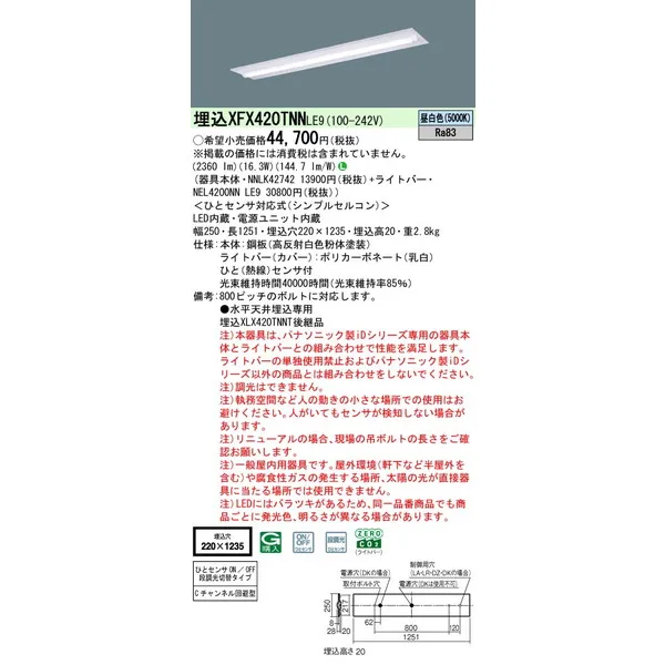 パナソニック 施設照明器具 LEDベースライト 天井埋込型 一体型 XFX420TNNLE9