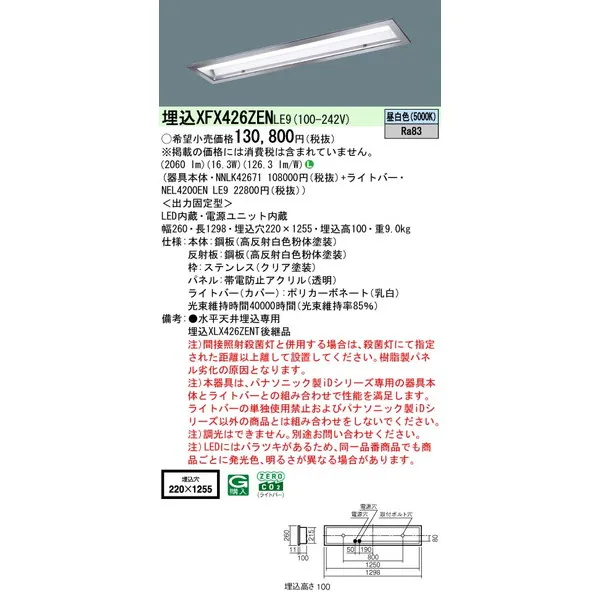 パナソニック 施設照明器具 LEDベースライト 天井埋込型 一体型 XFX426ZENLE9
