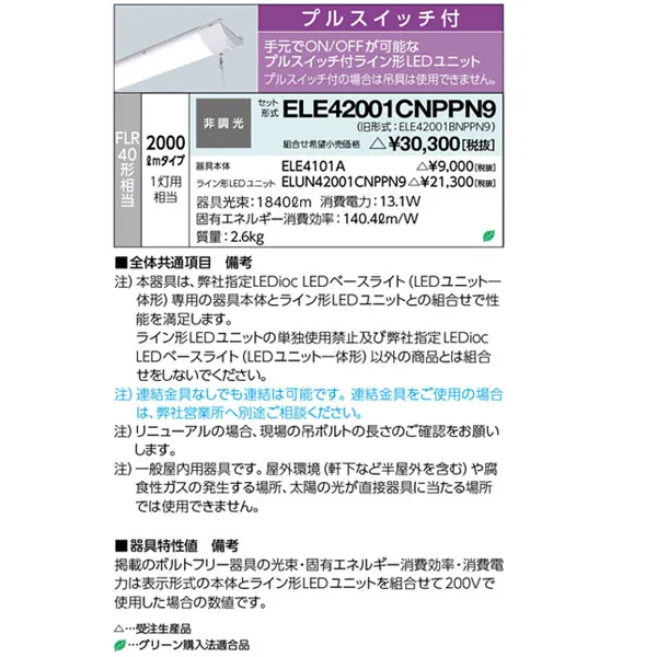 岩崎電気 LEDベースライト 埋込下面開放形 W150 プルスイッチ付 ELE42001CNPPN9