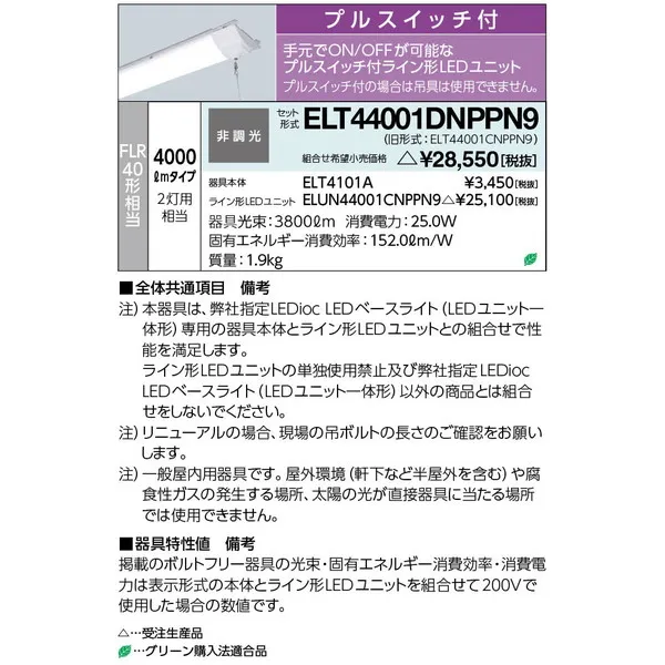 岩崎電気 LEDベースライト 天井直付型一体型 ELT44001DNPPN9