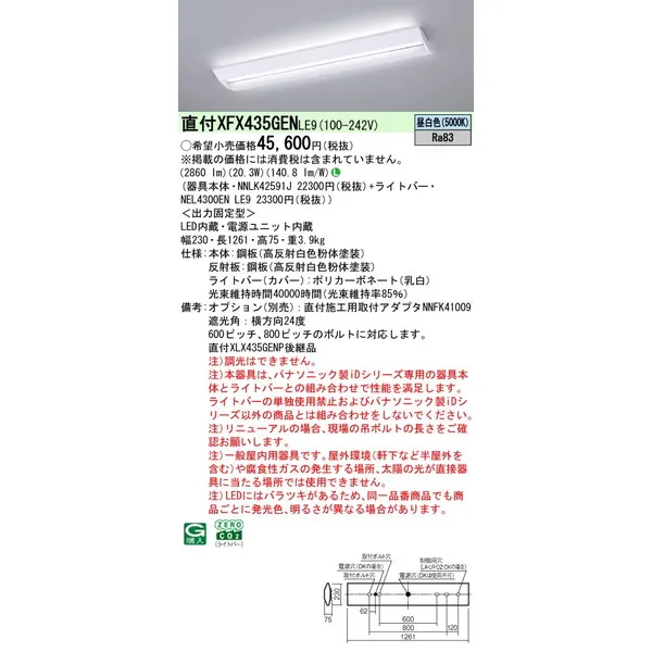 パナソニック LEDベースライト 天井直付型 一体型 XFX435GENLE9 スクールコンフォートタイプ