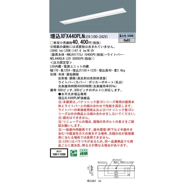 パナソニック 施設照明器具 LEDベースライト 天井埋込型 一体型 XFX440PLNLE9