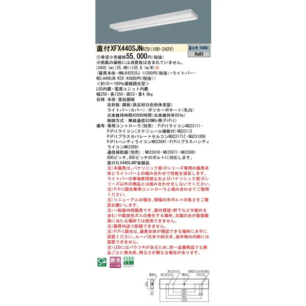 パナソニック LEDベースライト 天井直付型 一体型 XFX440SJNRZ9 スリムベース スペースコンフォート