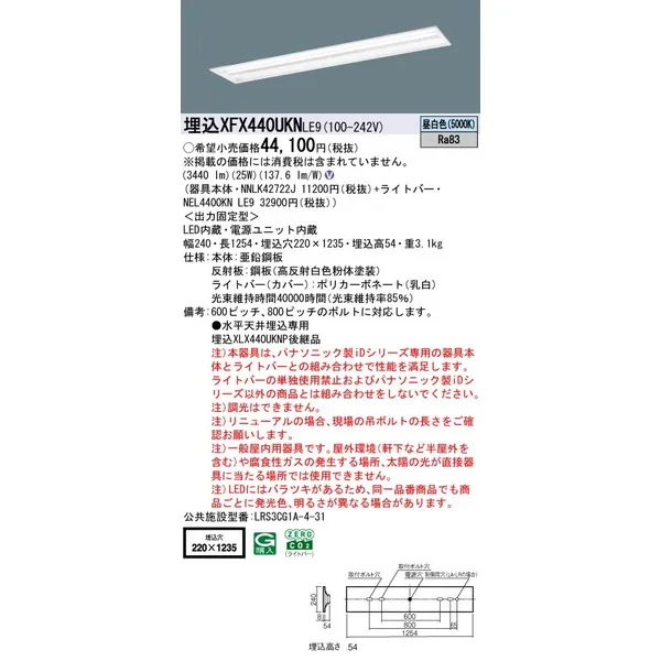 パナソニック 施設照明器具 LEDベースライト 天井埋込型 一体型 XFX440UKNLE9