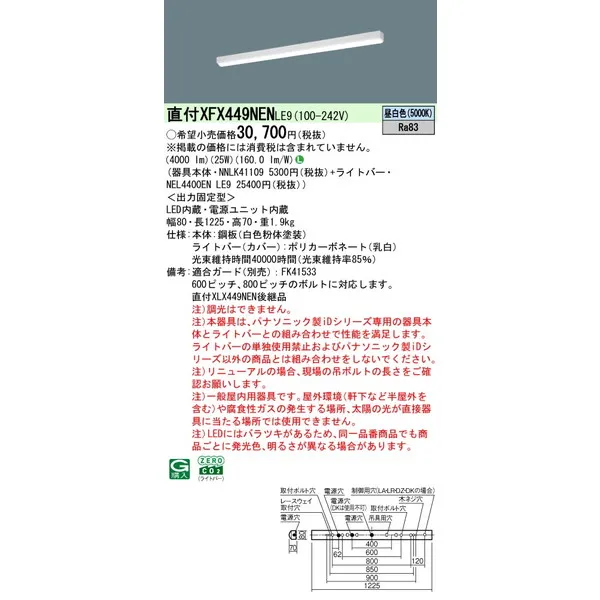 パナソニック LEDベースライト 天井直付型 一体型 XFX449NENLE9 リニューアル用 iスタイル ストレートタイプ