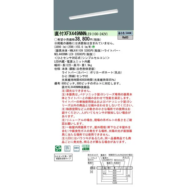 パナソニック LEDベースライト 天井直付型 一体型 XFX449NNNLE9 リニューアル用 iスタイル
