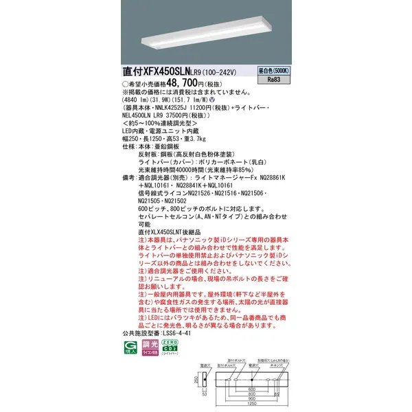 パナソニック LEDベースライト 天井直付型 一体型 XFX450SLNLR9 コンフォート スリムベース