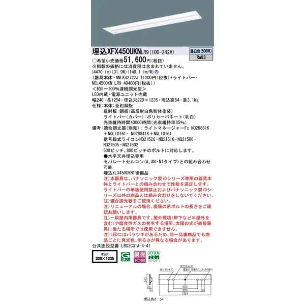 パナソニック 施設照明器具 LEDベースライト 天井埋込型 一体型 XFX450UKNLR9