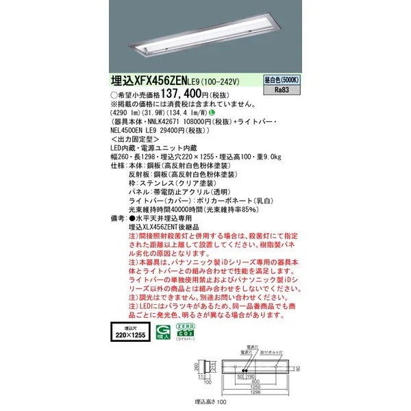 パナソニック 施設照明器具 LEDベースライト 天井埋込型 一体型 XFX456ZENLE9