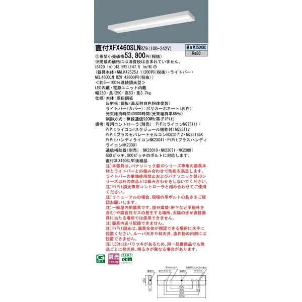 パナソニック LEDベースライト 天井直付型 一体型 XFX460SLNRZ9