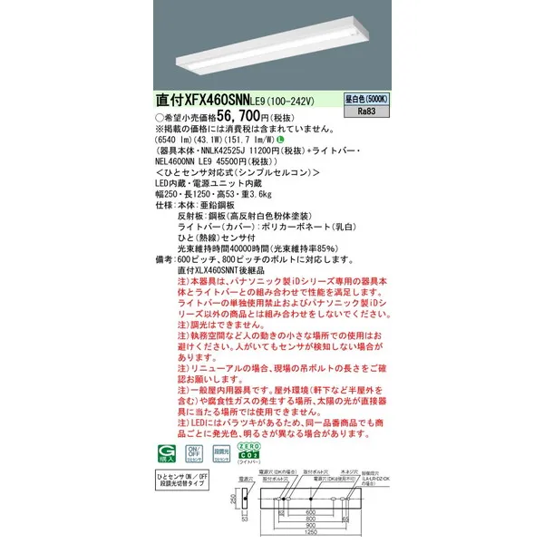パナソニック LEDベースライト 天井直付型 一体型 XFX460SNNLE9