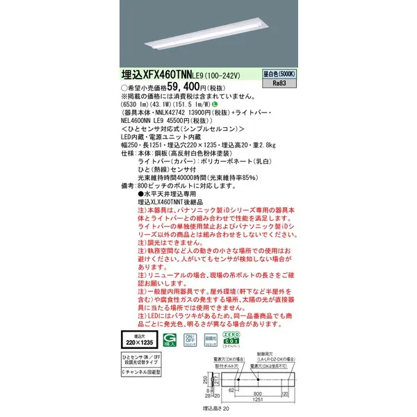 パナソニック 施設照明器具 LEDベースライト 天井埋込型 一体型 XFX460TNNLE9