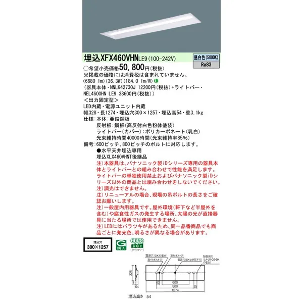 パナソニック 施設照明器具 LEDベースライト 天井埋込型 一体型 XFX460VHNLE9