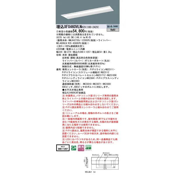 パナソニック 施設照明器具 LEDベースライト 天井埋込型 一体型 XFX460VLNRZ9