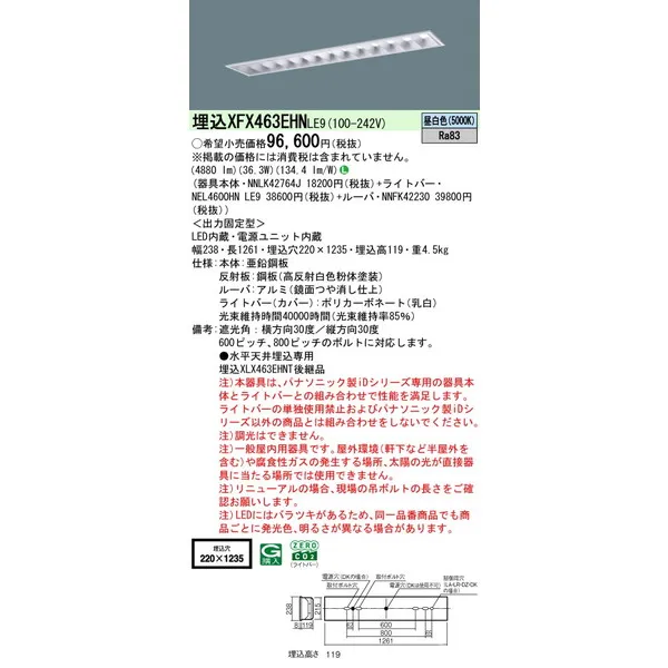 パナソニック 施設照明器具 LEDベースライト 天井埋込型 一体型 XFX463EHNLE9