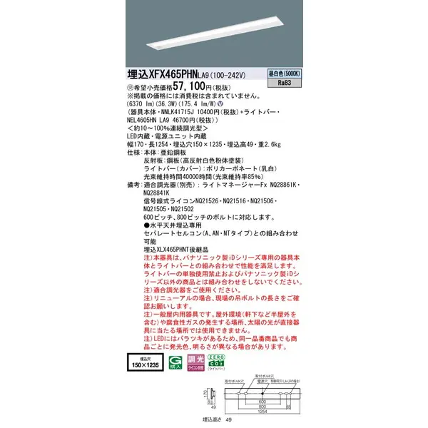 パナソニック LEDベースライト 天井直付型 一体型 XFX465PHNLA9