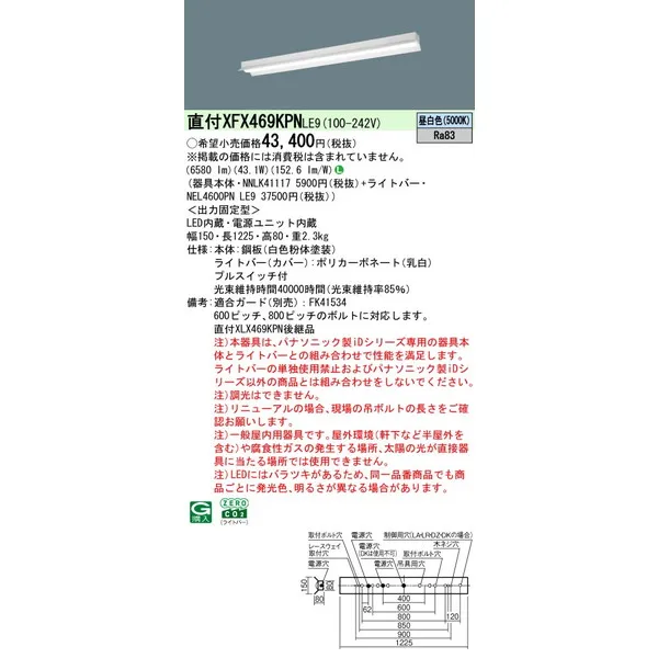 パナソニック LEDベースライト 天井直付型 一体型 XFX469KPNLE9 リニューアル用 反射笠付型