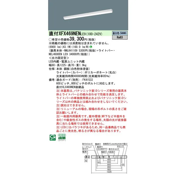 パナソニック LEDベースライト 天井直付型 一体型 XFX469NENLE9 リニューアル用