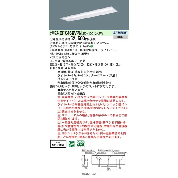 パナソニック 施設照明器具 LEDベースライト 天井埋込型 一体型 XFX469VPNLE9