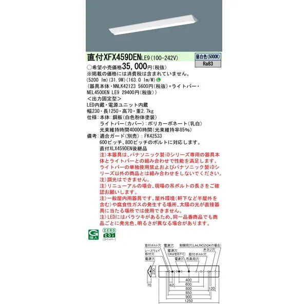 パナソニック 施設照明器具 LEDベースライト 天井埋込型 一体型 XFX459DENLE9