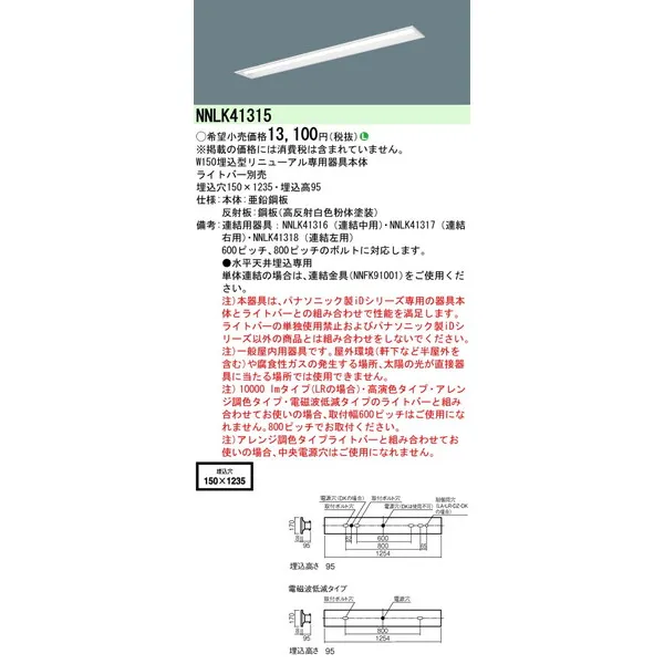 パナソニック 施設照明器具 LEDベースライト 天井直付 本体 NNLK41315