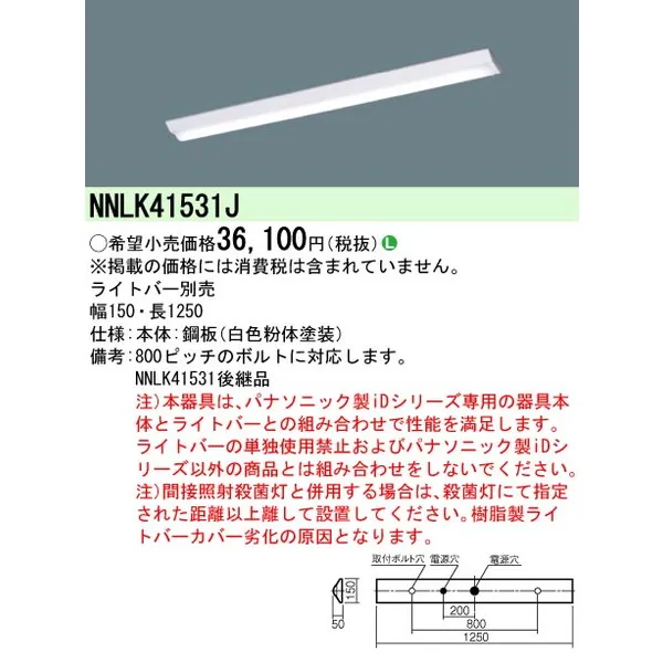 パナソニック 施設照明器具 LEDベースライト 天井直付 本体 NNLK41531J