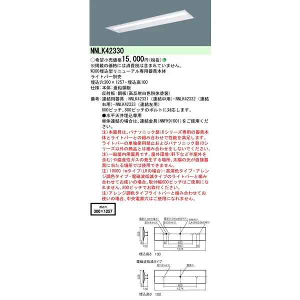 パナソニック 施設照明器具 LEDベースライト 天井直付 本体 NNLK42330