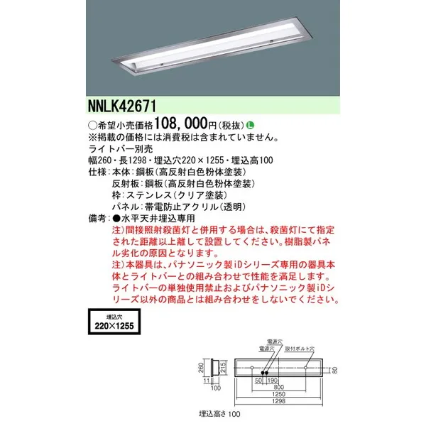 パナソニック 施設照明器具 LEDベースライト 天井直付 本体 NNLK42671
