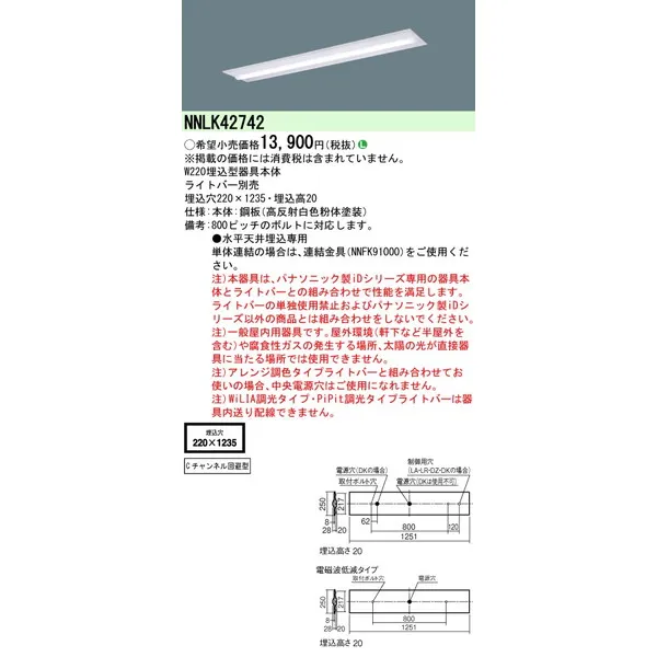 パナソニック 施設照明器具 LEDベースライト 天井直付 本体 NNLK42742