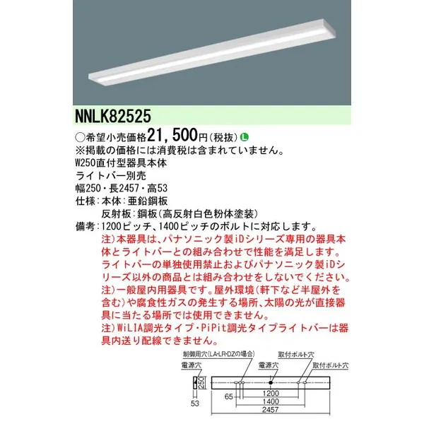 パナソニック 施設照明器具 LEDベースライト 天井直付 本体 NNLK82525