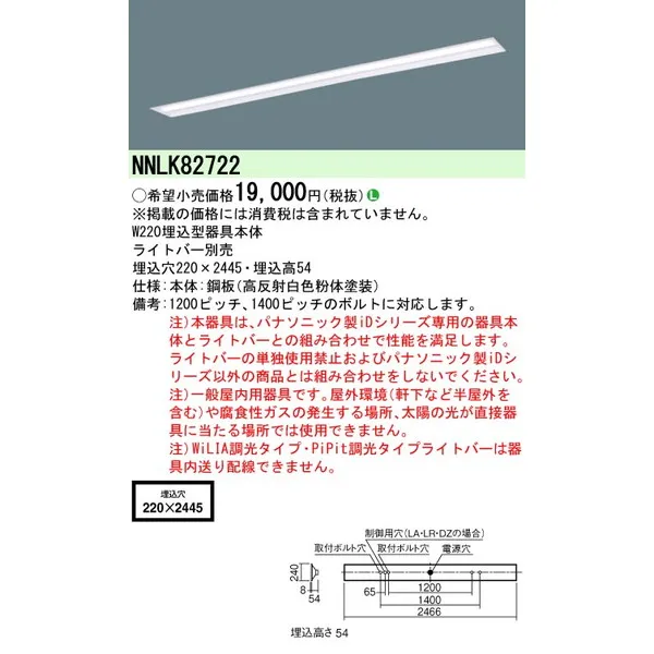 パナソニック 施設照明器具 LEDベースライト 天井直付 本体 NNLK82722