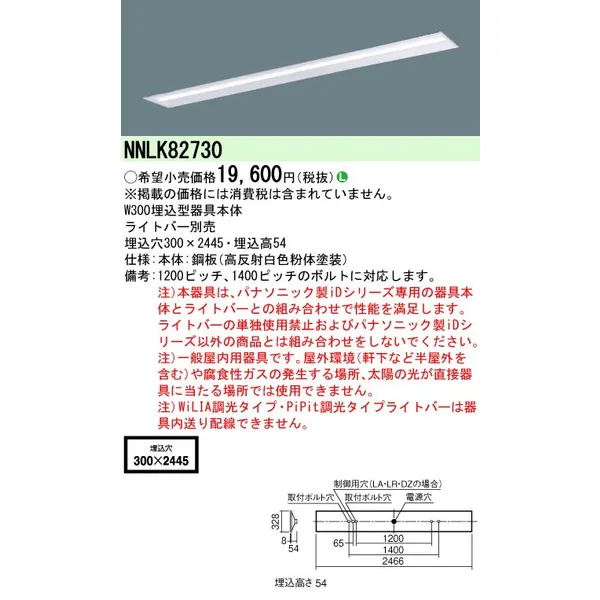 パナソニック 施設照明器具 LEDベースライト 天井直付 本体 NNLK82730