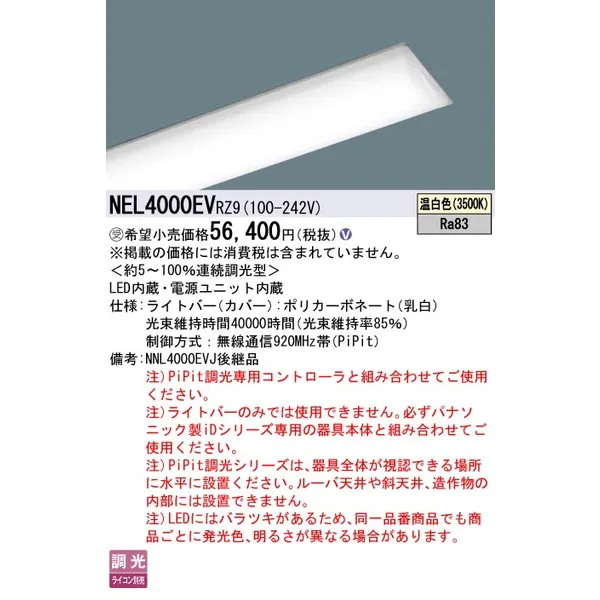 パナソニック 施設照明器具 LEDベースライト ライトバー NEL4000EVRZ9