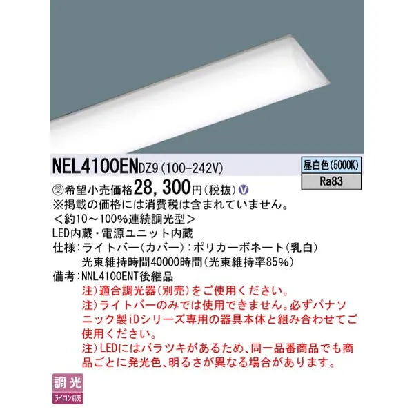 パナソニック 施設照明器具 LEDベースライト ライトバー NEL4100ENDZ9