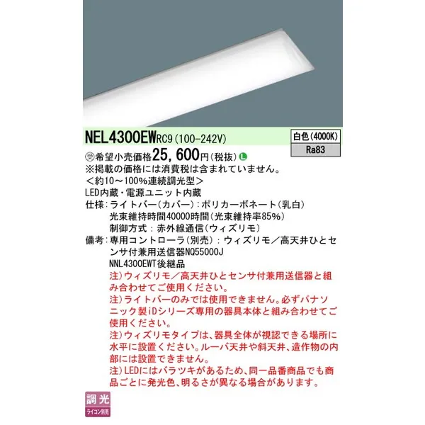 パナソニック 施設照明器具 LEDベースライト ライトバー NEL4300EWRC9