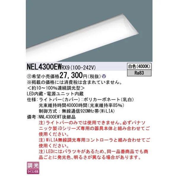 パナソニック 施設照明器具 LEDベースライト ライトバー NEL4300EWRX9