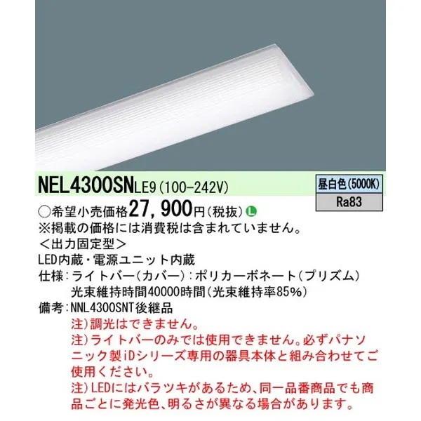 パナソニック 施設照明器具 LEDベースライト ライトバー NEL4300SNLE9
