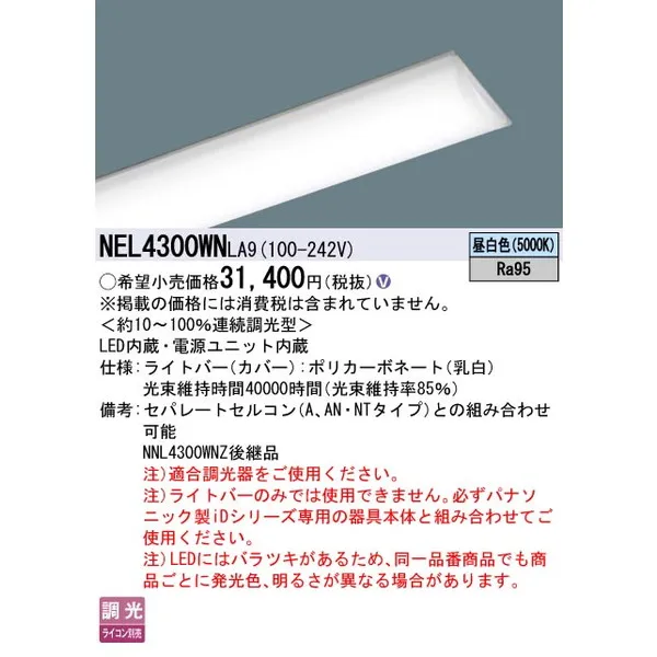 パナソニック 施設照明器具 LEDベースライト ライトバー NEL4300WNLA9