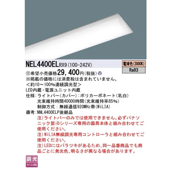 パナソニック 施設照明器具 LEDベースライト ライトバー NEL4400ELRX9
