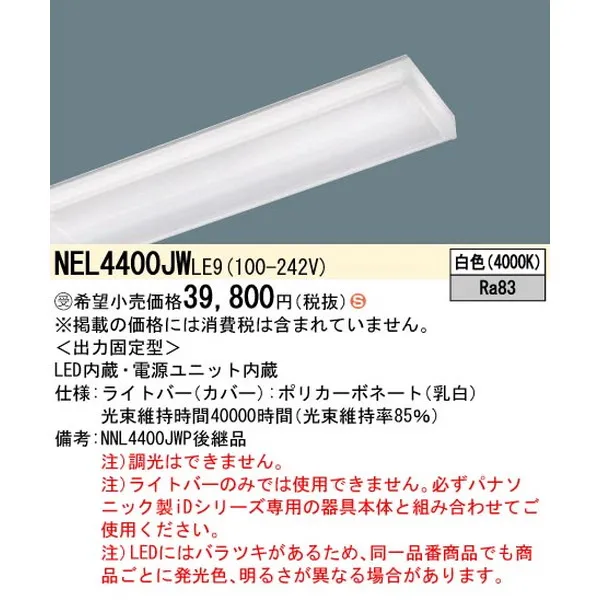 パナソニック 施設照明器具 LEDベースライト ライトバー NEL4400JWLE9